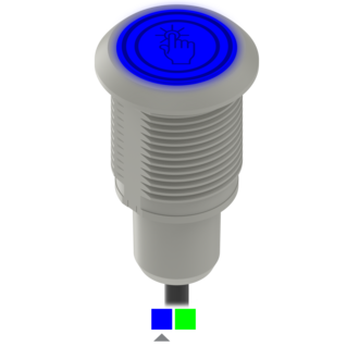 Output: Bipolar, NO, Momentary; Colors: Blue Green